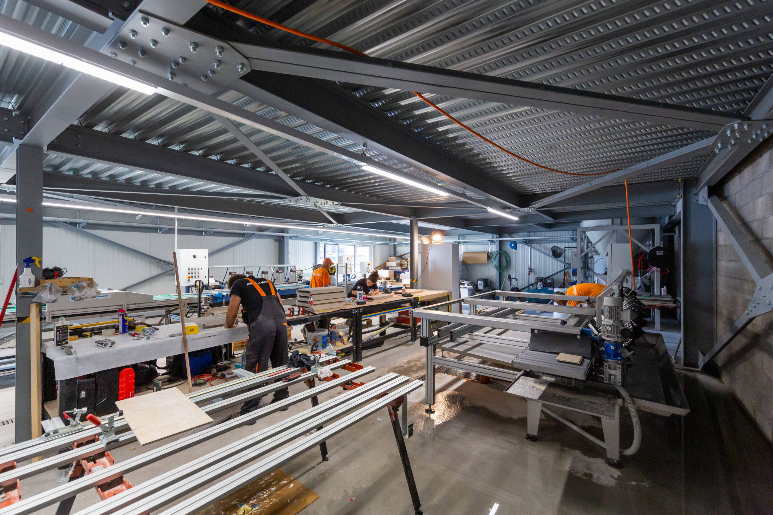Notre structure regroupe plusieurs unités de production industrielle ainsi que plusieurs ateliers d’assemblage, installés dans une halle moderne de 800 m². Ce bâtiment est équipé de 500 m² de panneaux photovoltaïques, faisant de notre site une installation énergétiquement durable et respectueuse de l’environnement.